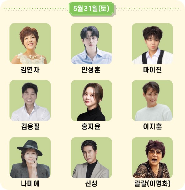 - 남진, 송가인, 조항조, 양지은, 진해성, 홍지윤, 신성, 전유진, 김태연,